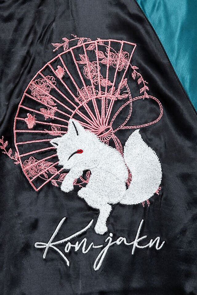美しい日本の風景総刺繍スカジャン 今昔 KJ-29243 和柄 和風 スーベニアジャケット 狐 きつね キツネ