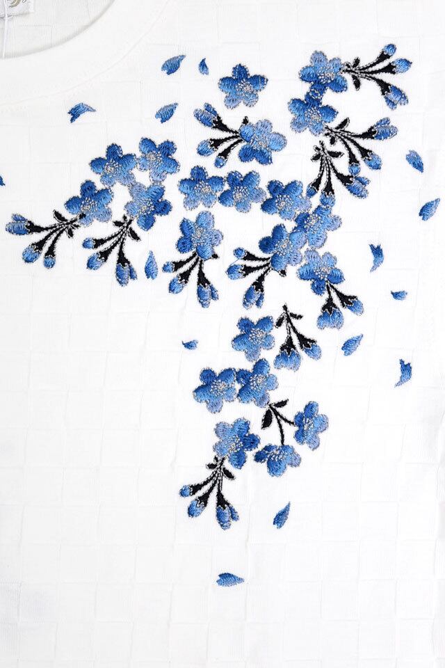 フロントバック共に、青で表現された桜を上品に刺繍しました。