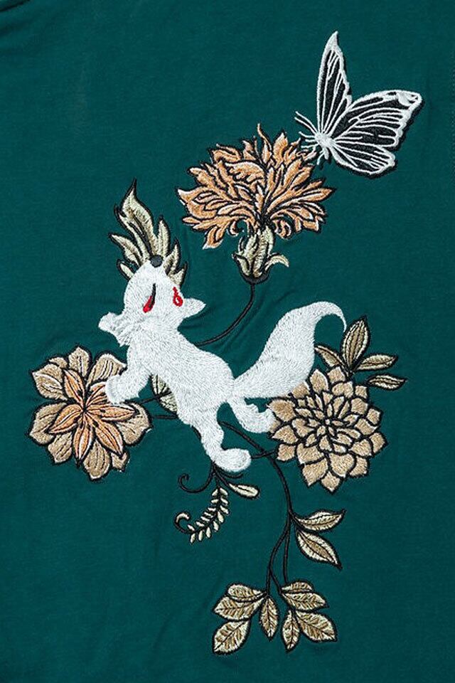 百花繚乱天竺ジップパーカー 今昔 KJ-29246 和柄 和風 狐 きつね キツネ 刺繍 こんじゃく