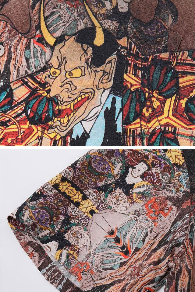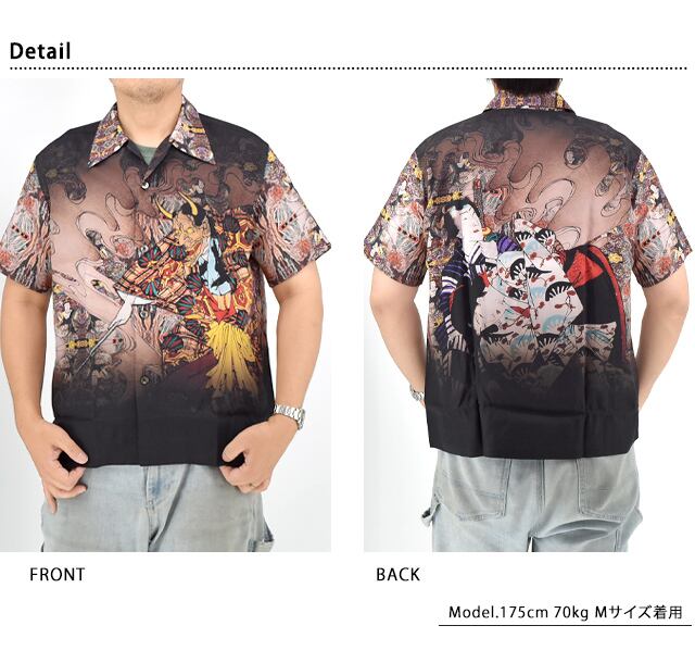 今回、月岡芳年の作品をアロハシャツとして表現するにあたり「NEW STORY」では、シャツ全体を使って原画を配し、グラデーションを組み合わせてメリハリのある作品に仕上げています。