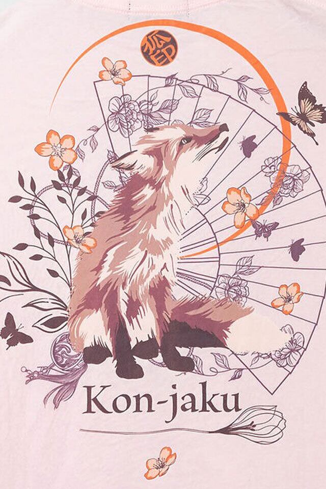 檸檬の花の咲くころ半袖Tシャツ 今昔 KJ-29259 和柄 和風 狐 きつね キツネ こんじゃく