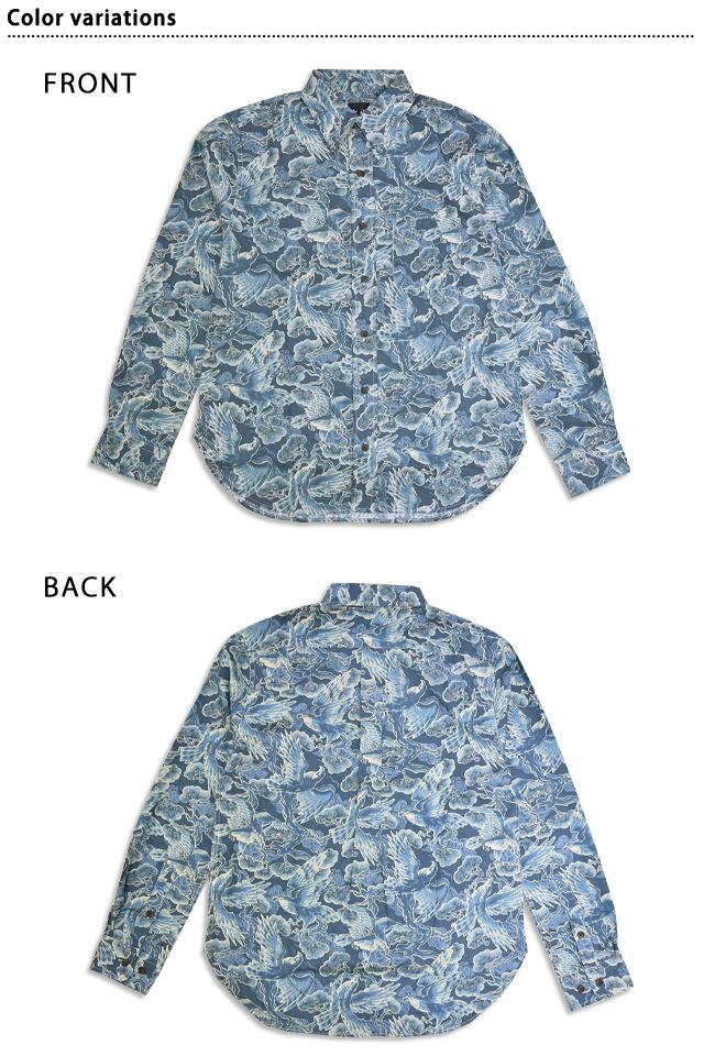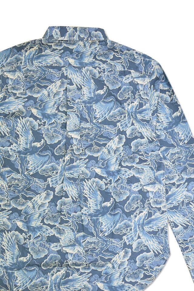 抜染調長袖レギュラーカラーシャツ「松鷹」 衣櫻 SA-1724 和柄 和風 日本製 国産 総柄