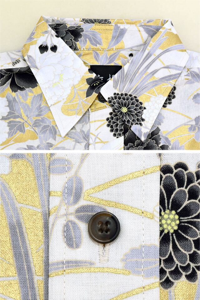 味わい深い物作りをされている衣櫻さんから、長袖レギュラーカラーシャツ「金彩四季富花」(SA-1723)のご紹介です。