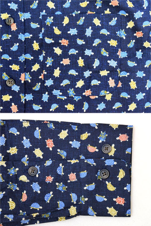 長袖レギュラーカラーシャツ「亀モノグラム」 衣櫻 SA-1722 和柄 和風 日本製 国産 総柄 カメ