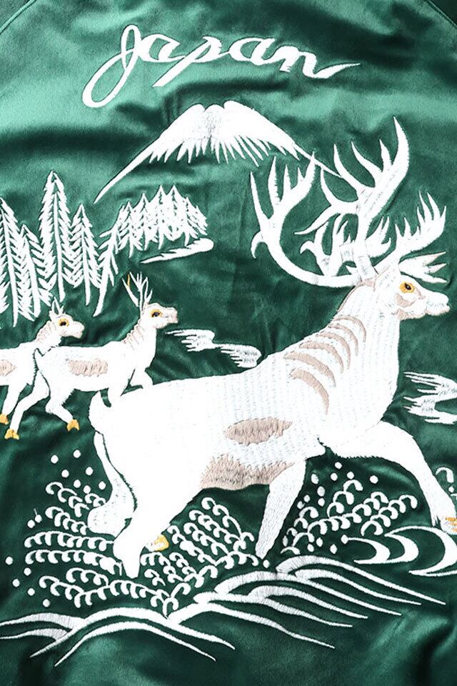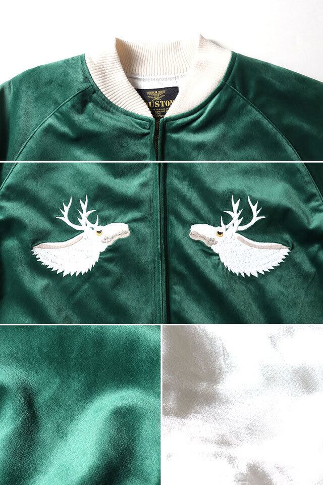別珍スカジャン VELVETEEN SOUVENIR JACKET「DEER」 HOUSTON 51523 ヒューストン ベロア 鹿 刺繍 和柄