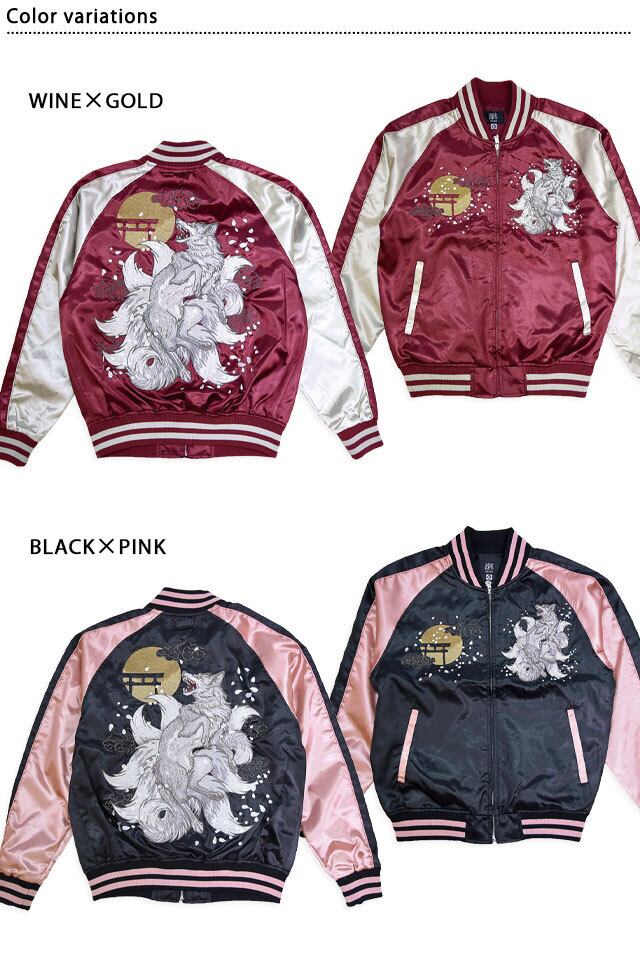 九尾サテンスカジャン 朧 9051811 和柄 和風 刺繍 狐 きつね キツネ 妖怪 スーベニアジャケット おぼろ