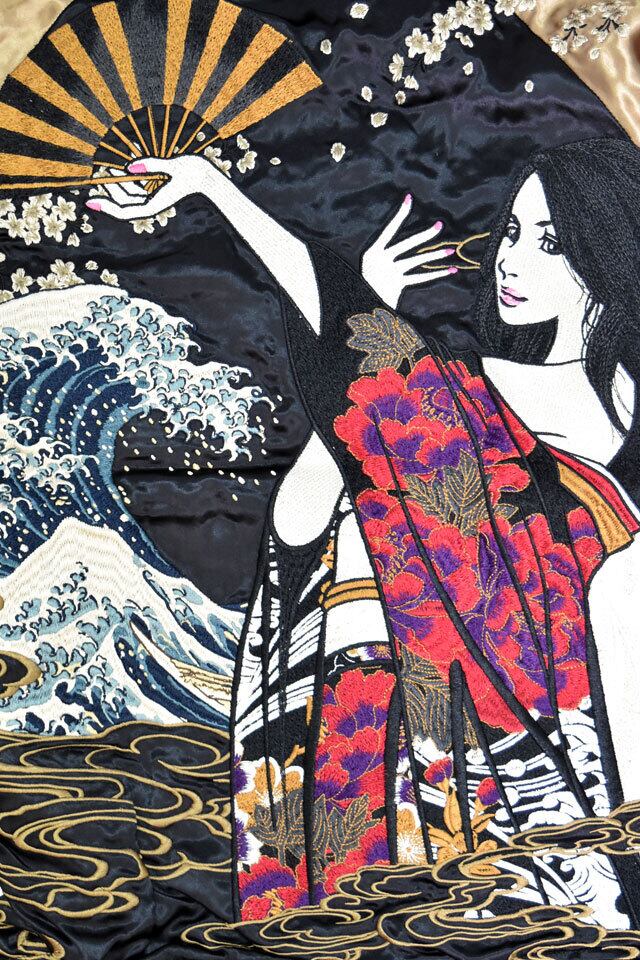 抜刀娘 結愛花魁リバーシブルスカジャン 抜刀娘 254027 和柄 和風 刺繍 着物 荒波 スーベニアジャケット