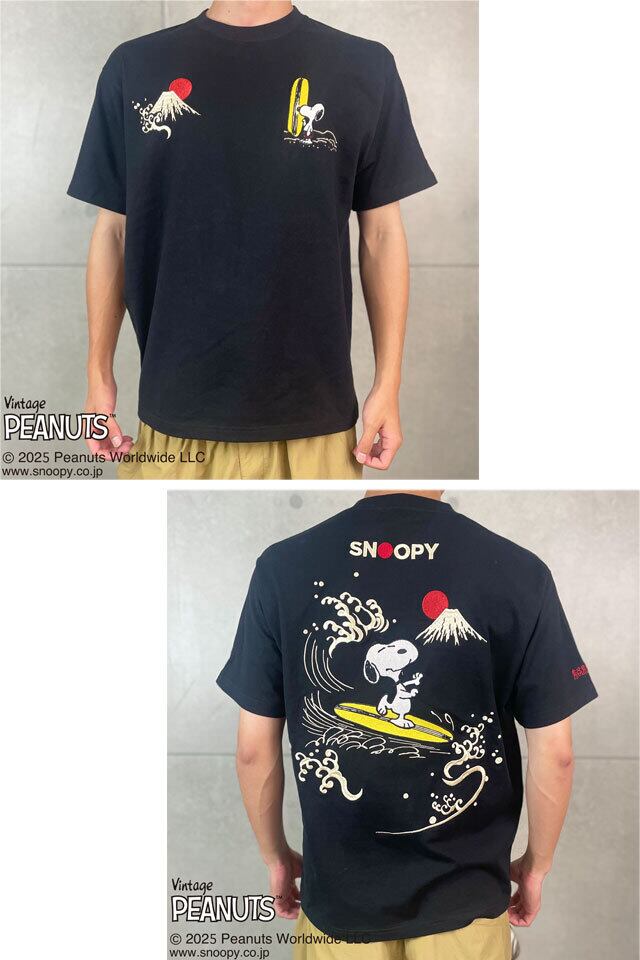 絡繰魂×スヌーピーコラボ JAPAN SURF半袖Tシャツ 絡繰魂 254090 和柄 和風 刺繍 ピーナッツ からくり