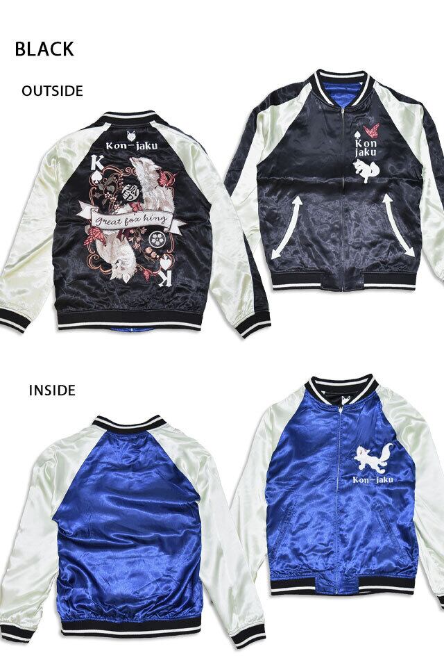 スペードのキング刺繍リバーシブルスカジャン 今昔 KJ-29262 和柄 和風 狐 きつね キツネ スーベニアジャケット