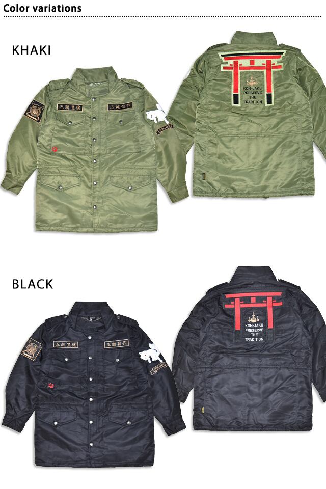 今昔ワッペンミリタリー防寒ジャケット 今昔 KJ-19012 和柄 和風 アーミー 狐 きつね キツネ ユニセックス