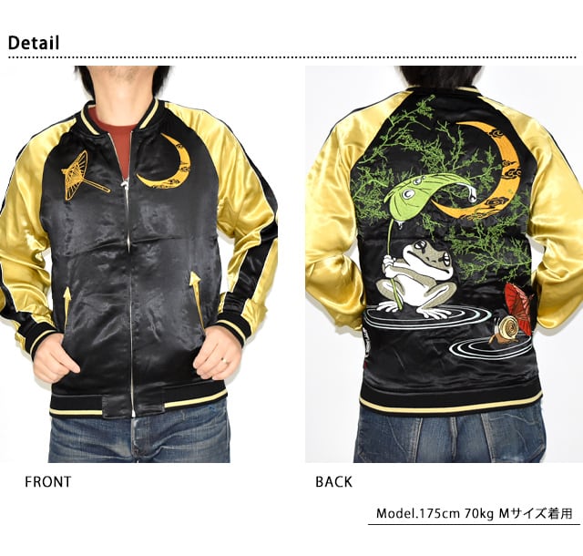 「雨宿り」総刺繍リバーシブルスカジャン 参丸一 SM-30627 和柄 和風 蛙 カエル かえる スーベニアジャケット