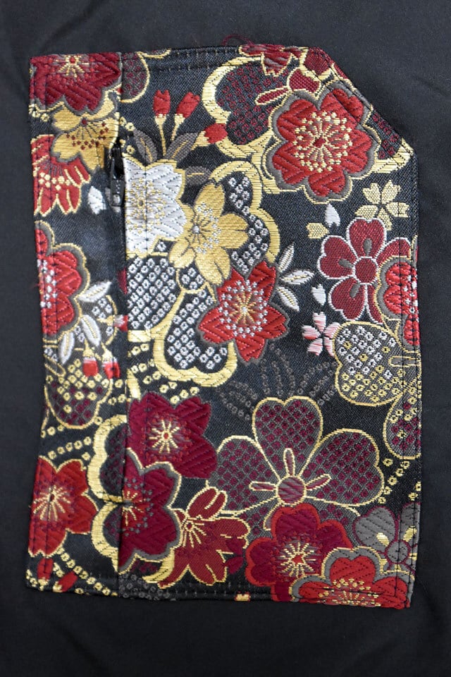 背中には花魁に扮した姿が妖艶な狐ガールを、アウトラインのみでプリントしました。