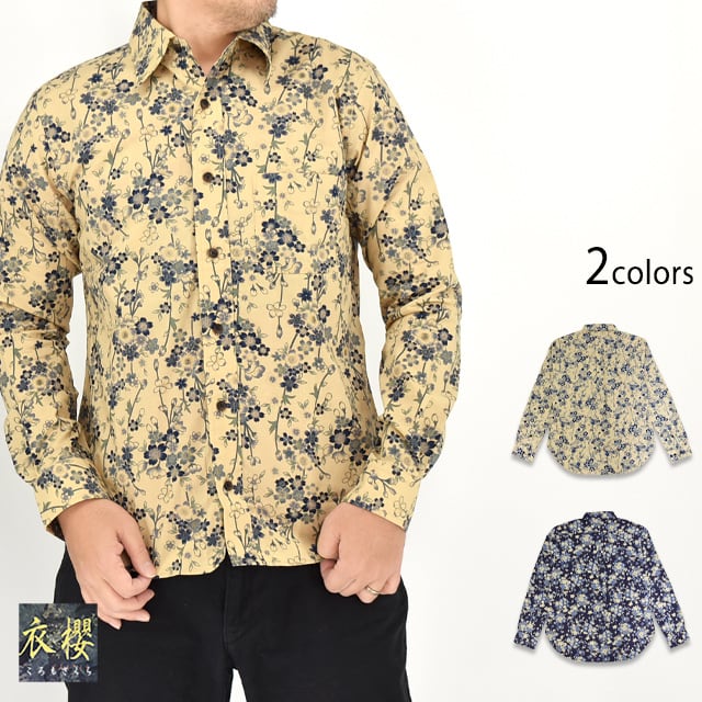 長袖レギュラーカラーシャツ「枝垂桜」 衣櫻 SA-1744 和柄 和風 日本製 国産 さくら サクラ