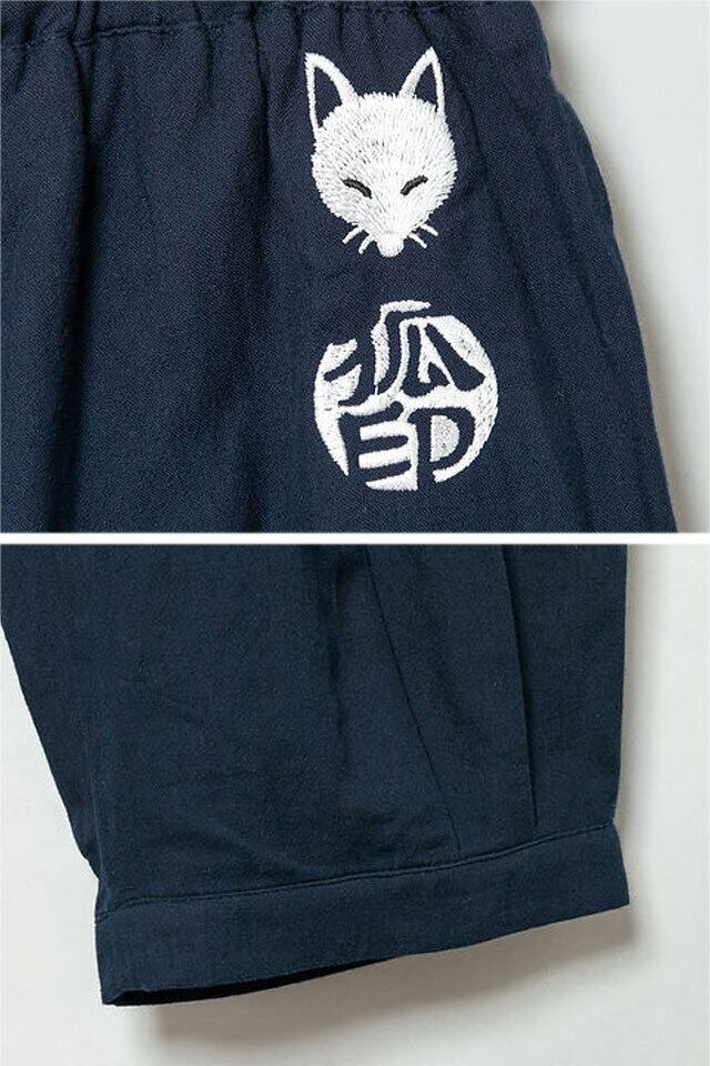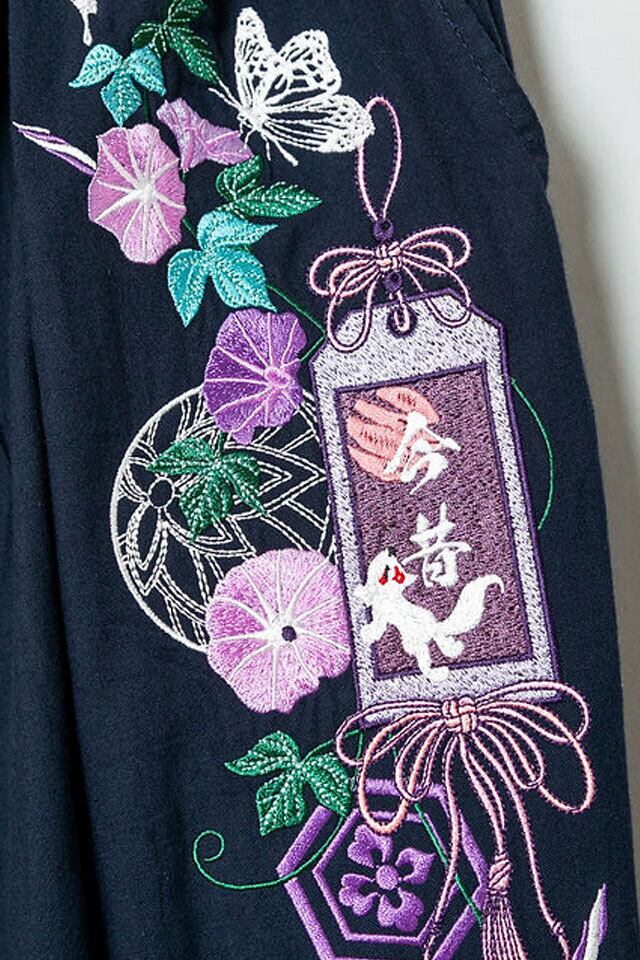 Morning glory総刺繍サルエルパンツ 今昔 KJ-29280 和柄 和風 狐 半端丈 ユニセックス