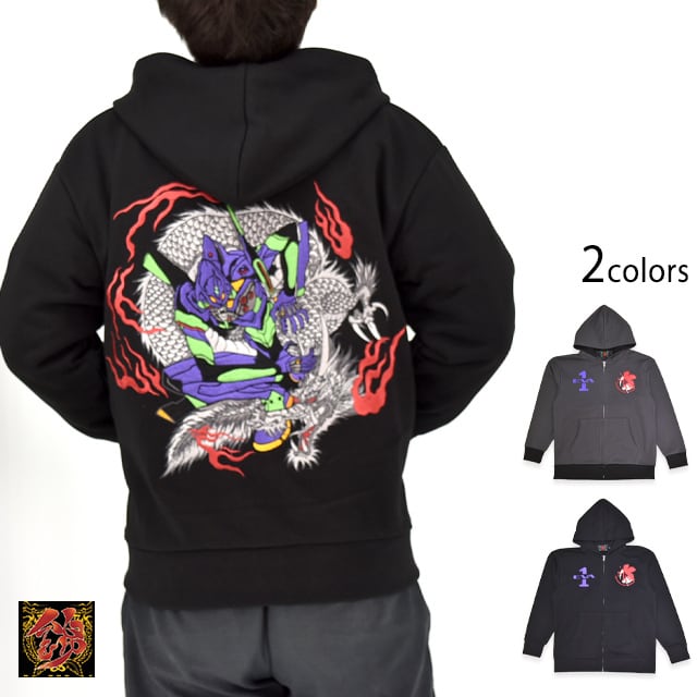 EVANGELION×錦 初号機×火龍ジップパーカー 錦 516350 和柄 和風 エヴァンゲリオン 刺繍 竜 ドラゴン