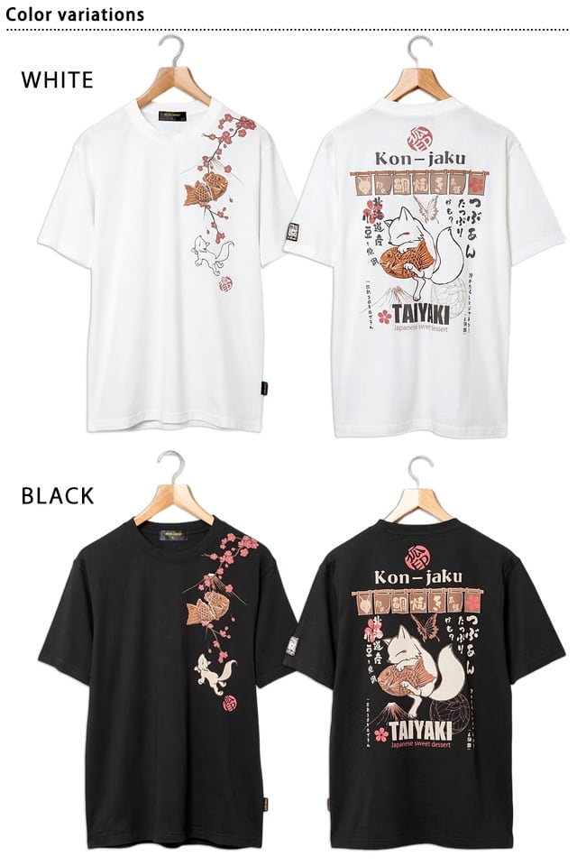 狐印の鯛焼き本舗半袖Tシャツ 今昔 KJ-29267 和柄 和風 キツネ こんじゃく