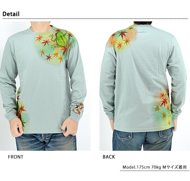 東福寺蛙ロングTシャツ 碧 あお 和柄 和風 手描き 手書き かえる カエル 長袖 京都 職人