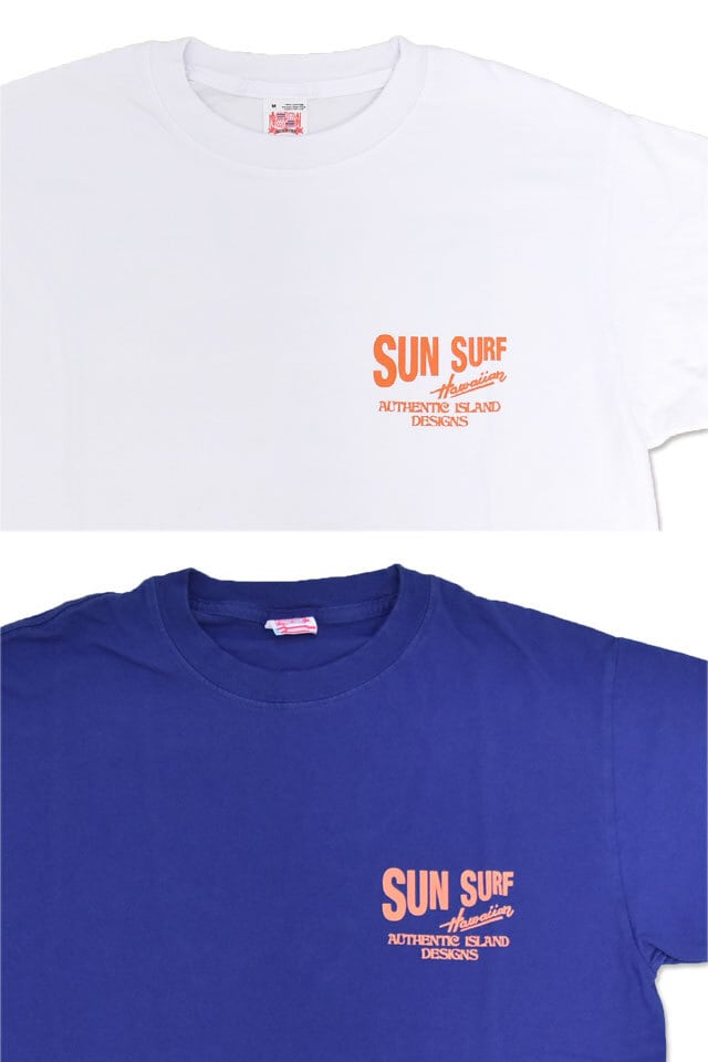 アロハシャツの黄金時代とされる1930~50年代にかけて作られた「ヴィンテージ」と呼ばれる貴重なアロハシャツを再現し、現代に蘇らせているブランド「SUN SURF」から、半袖Tシャツ「KOTOBUKI」(SS79749)のご紹介です。