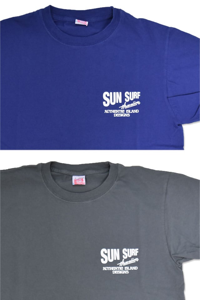 アロハシャツの黄金時代とされる1930~50年代にかけて作られた「ヴィンテージ」と呼ばれる貴重なアロハシャツを再現し、現代に蘇らせているブランド「SUN SURF」から、半袖Tシャツ「BON DANCE」(SS79750)のご紹介です。