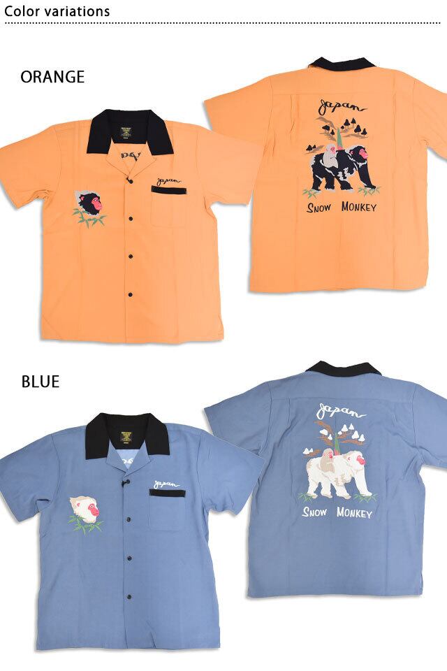 半袖スカシャツ「MONKEY」 HOUSTON 41280 ヒューストン 刺繍 猿 モンキー 和柄