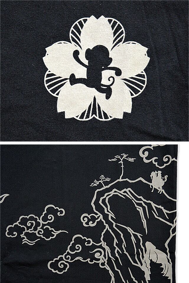 背中には、三蔵法師御一行に扮したおサルさんたちをプリント。
